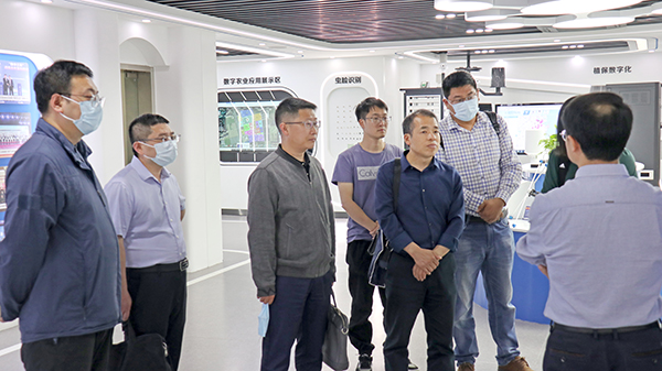 在托普云農的數字三農展廳中,曾大力院長一行聽取了朱旭華院長關于公司發展歷程、科研技術能力、智能農機裝備以及數字鄉村建設成果等專題匯報,并對托普云農在智慧農業領域領先的技術研發和落地推廣能力高度肯定。